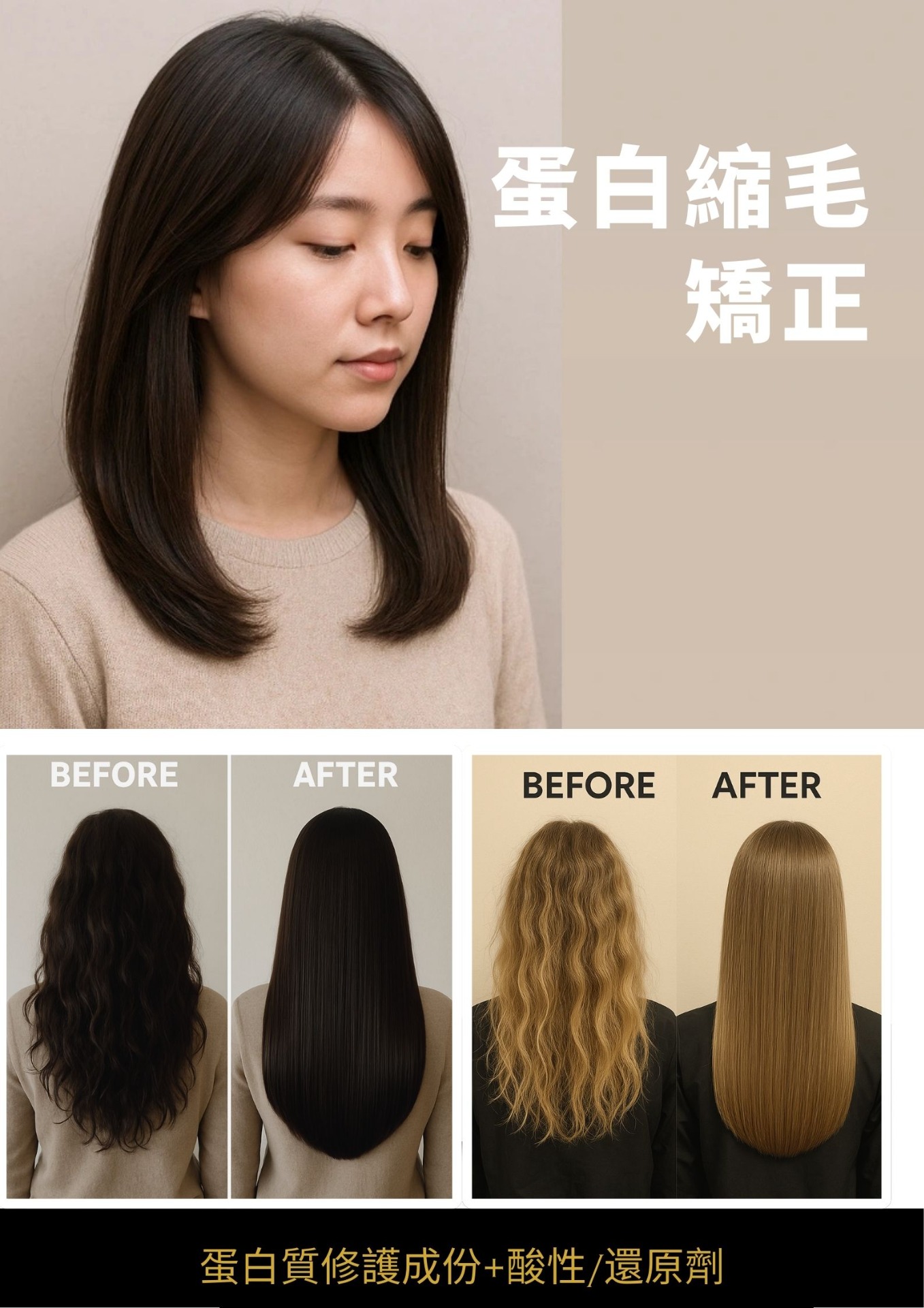 它不是燙直,是更接近修護型的柔順療程,對漂髮、毛躁髮質的效果特別好,做完的感覺比較像有光澤的順髮,不會像傳統矯正那麼乾那麼硬。